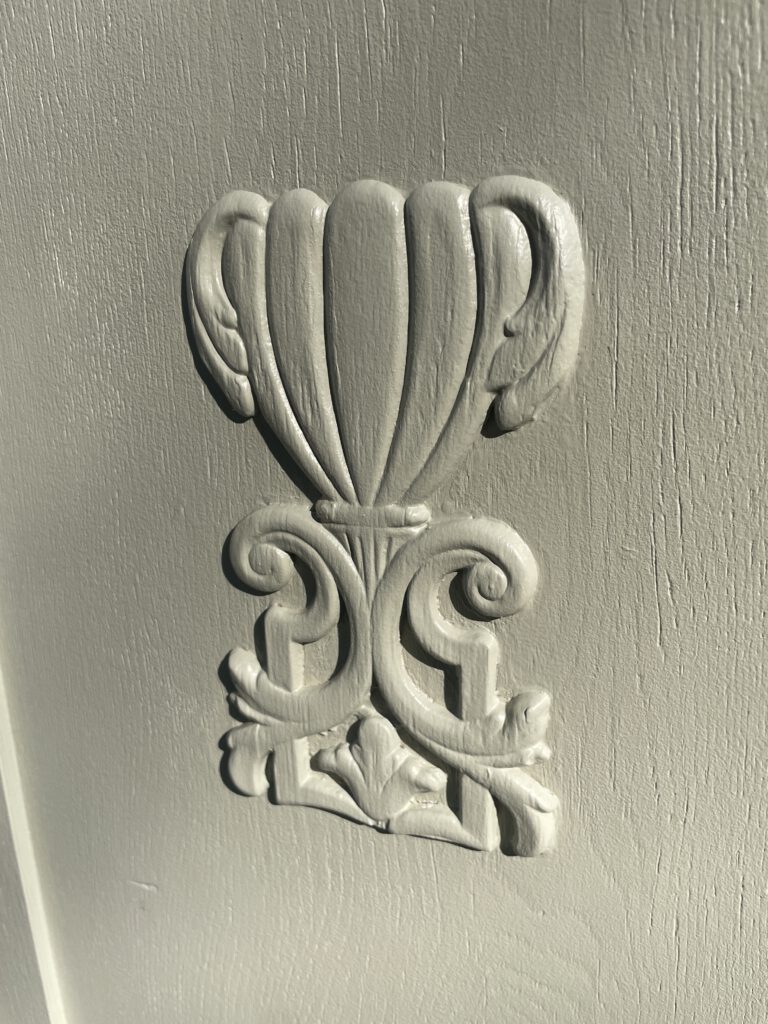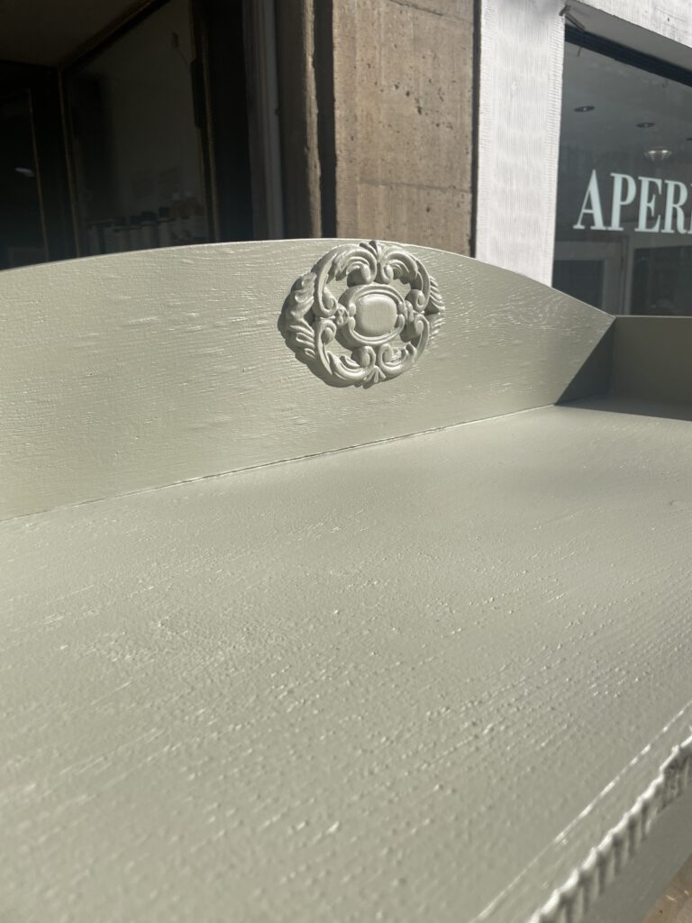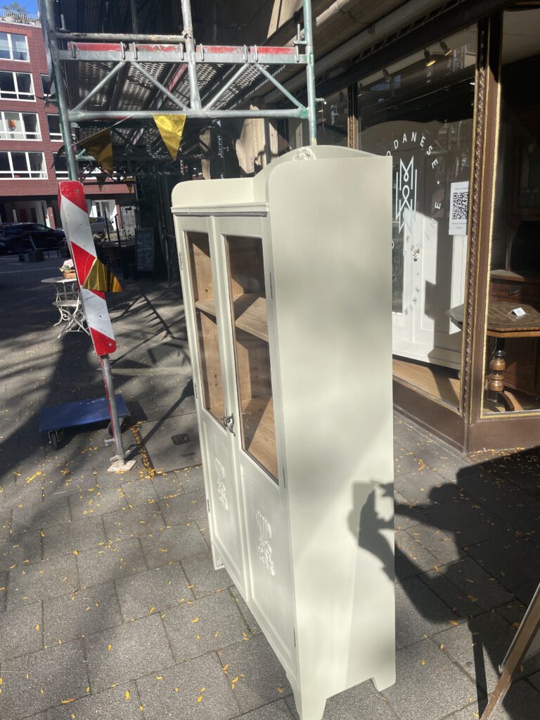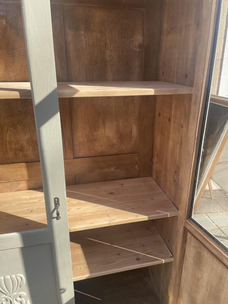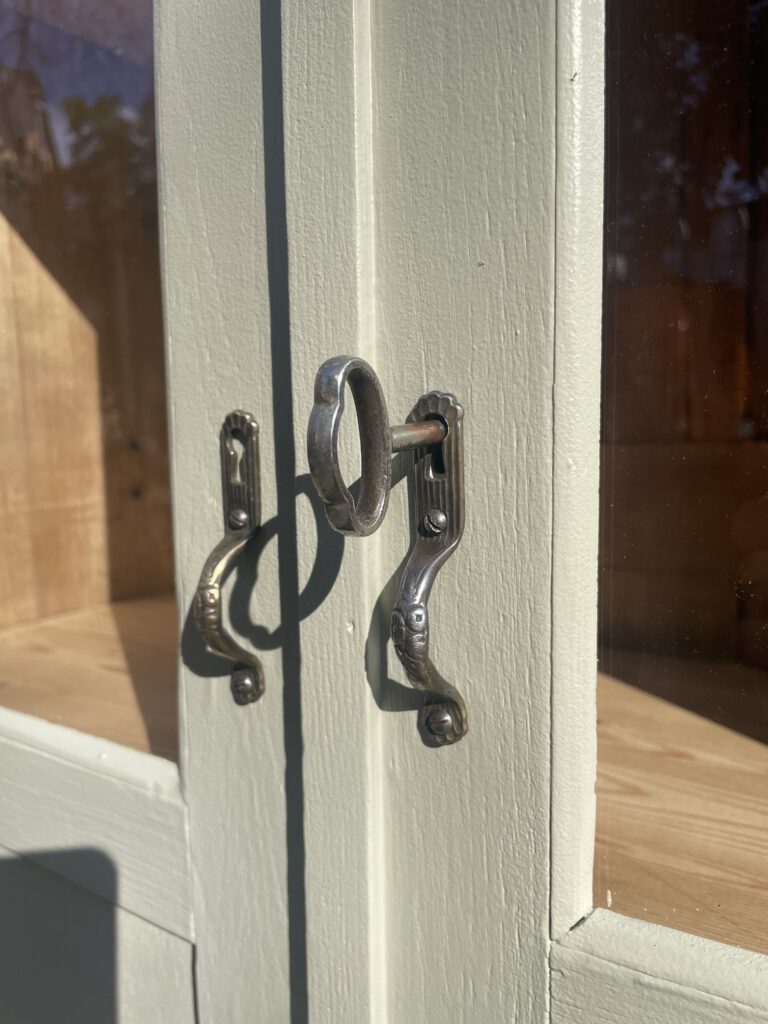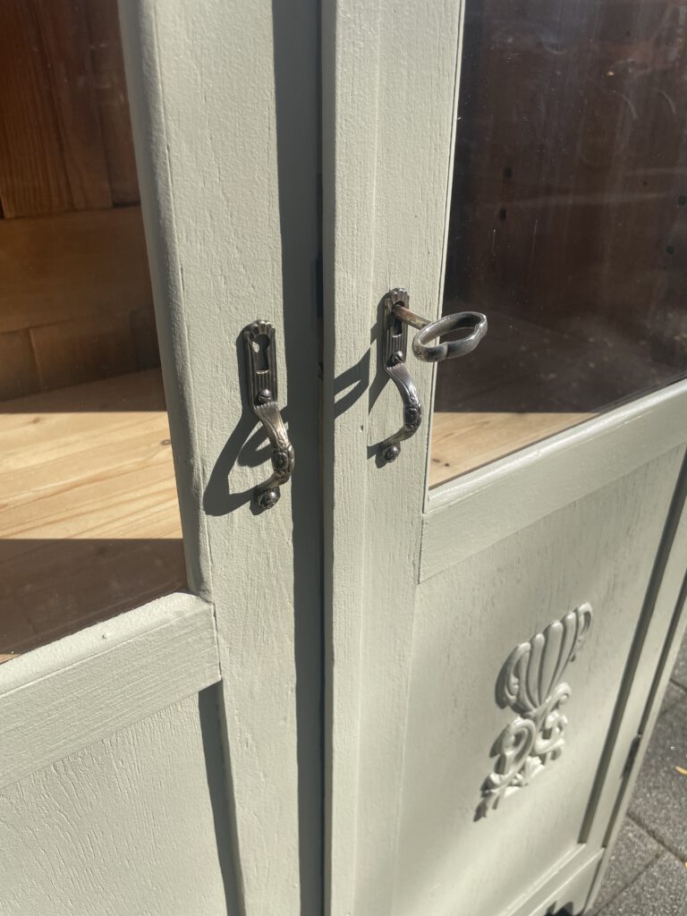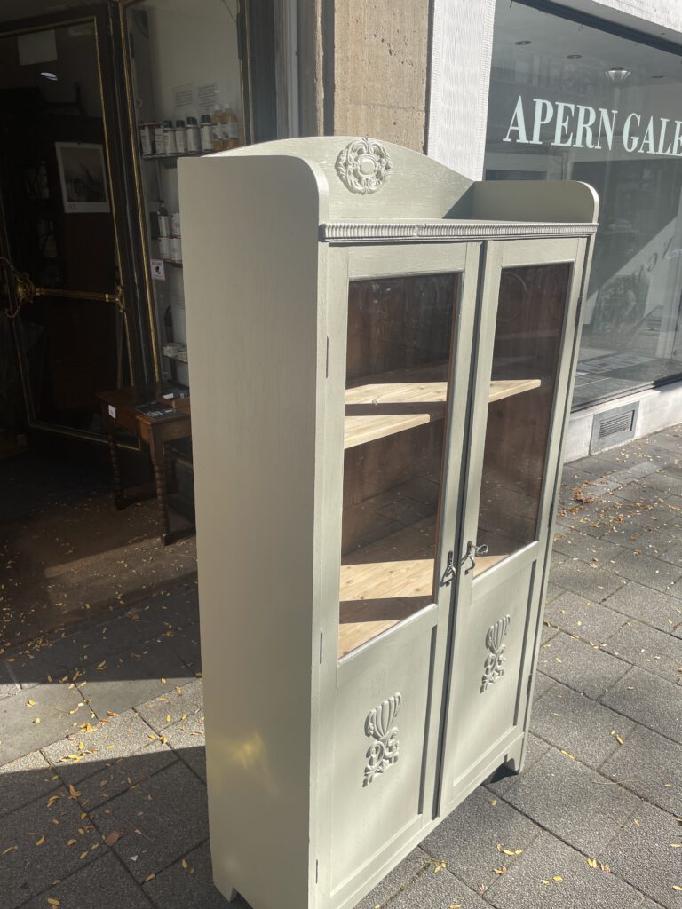 Wunderschöne Vitrine oder kleines Bücherregal aus den frühen 1900er Jahren. Das Möbelstück wurde restauriert und in der Farbe Pavilion Grey lackiert.